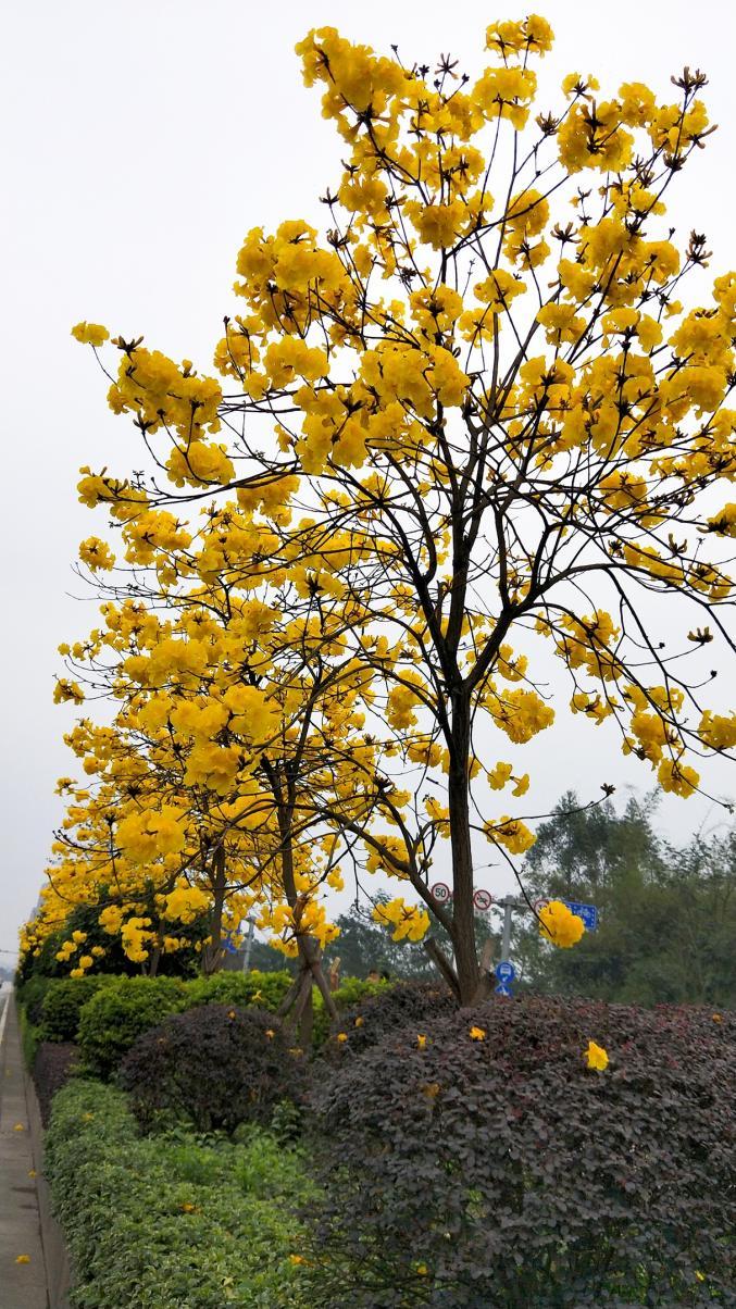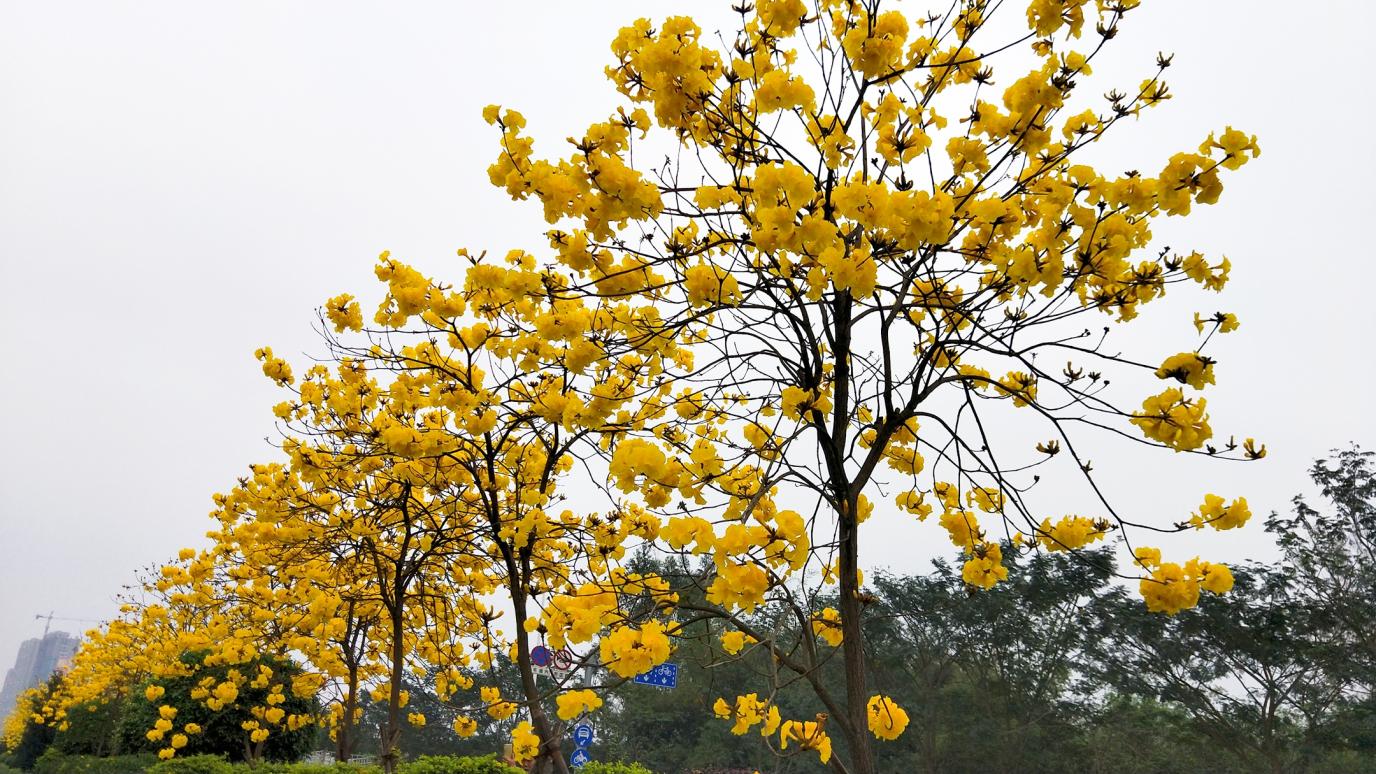 环城西路的黄花风铃木,一路金黄直叫人心醉