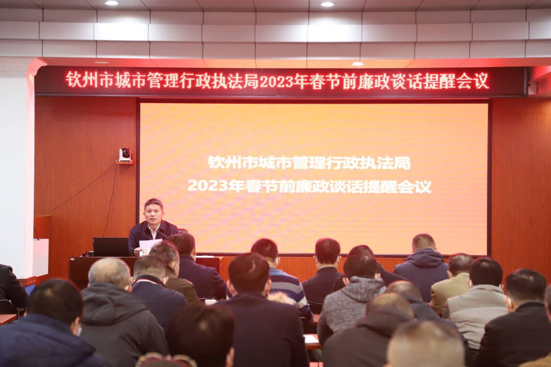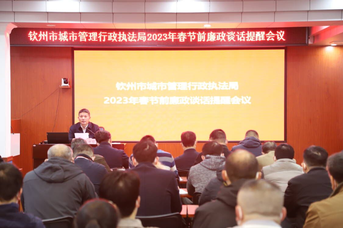 为贯彻落实党的二十大精神,进一步严明党的纪律,持之以恒纠正“四风”,持续筑牢贯彻落实中央八项规定及实施细则精神的堤坝,营造风清气正的节日气氛,2023年1月5日上午,市城管执法局召开2023年元旦春节期间廉政谈话提醒会议。局长、党组书记主持会议并讲话。