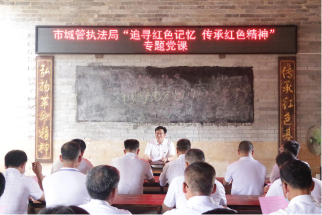 市城管执法局党员干部在革命旧址邓冠山祠举行新党员入党宣誓仪式和重温入党誓词活动,充分发挥老党员的模范带头作用,激励新党员在工作中勇挑重担的热情,进一步提高党员的责任感和使命感。