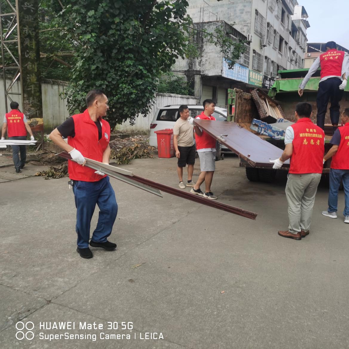 图为市环卫处党员志愿者在新隆社区第七网格清运大件垃圾