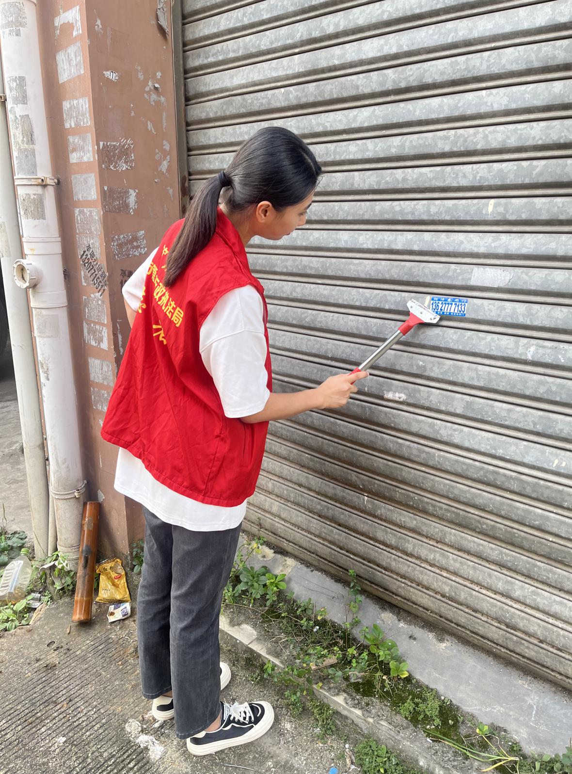 图为市环卫处志愿者清理“牛皮癣”小广告