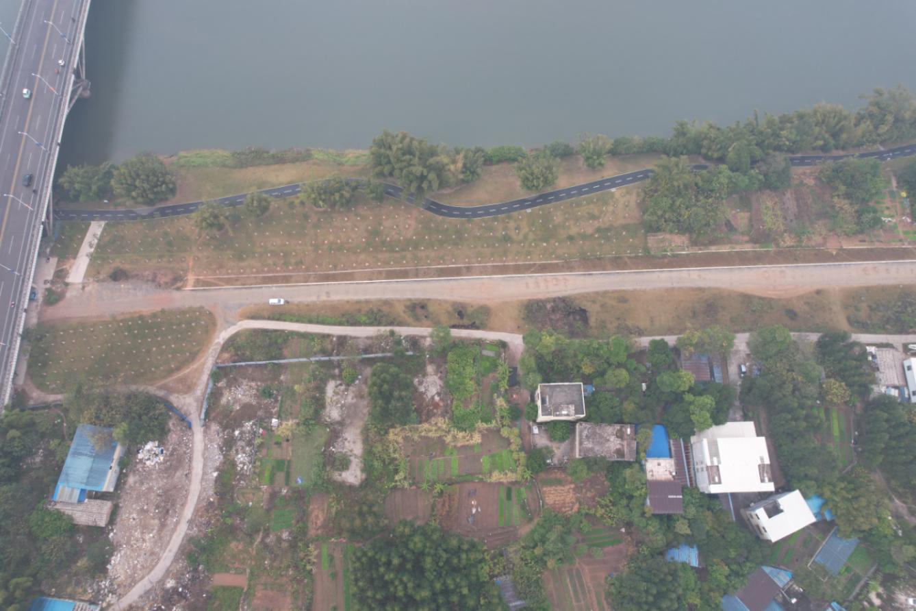 无人机在“俯瞰”钦江五桥,助力建筑垃圾治理