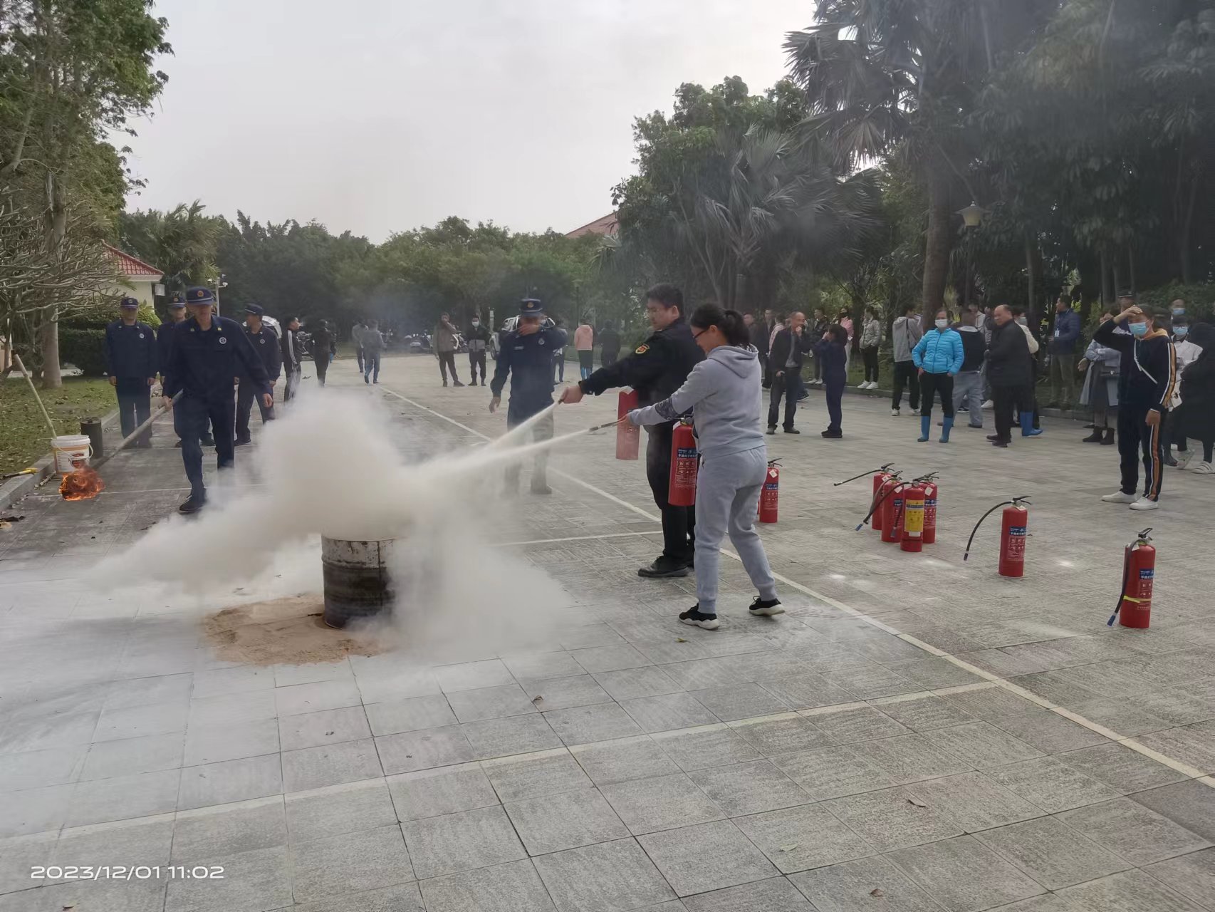 图为消防演练现场