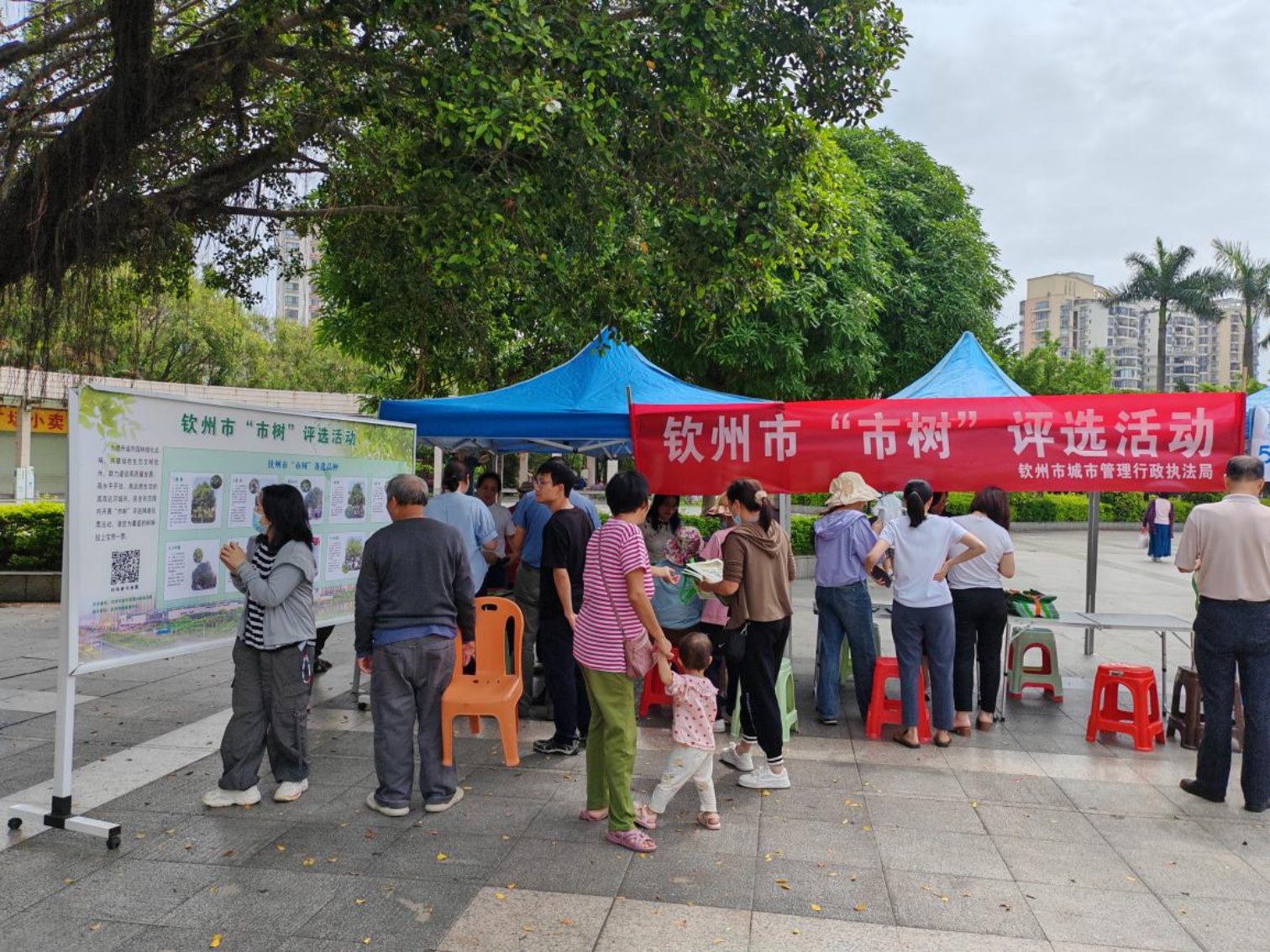 为了让市民群众更好地参与到“市树”投票活动中,市城管执法局在钦州湾广场举办了现场投票活动,市民群众针对备选树种的宣传牌议论纷纷,有的喜欢说荔枝,有的说要投凤凰木,有的说还是扁桃好,好不热闹呀。
