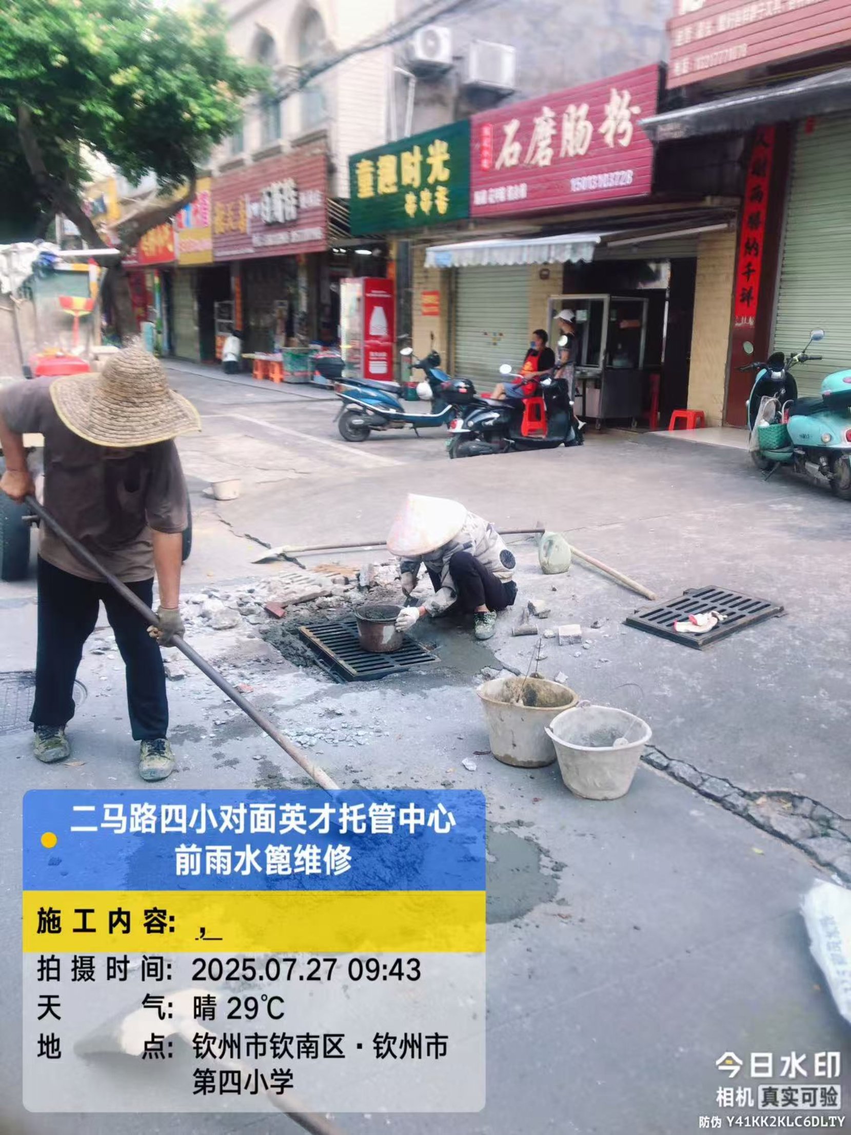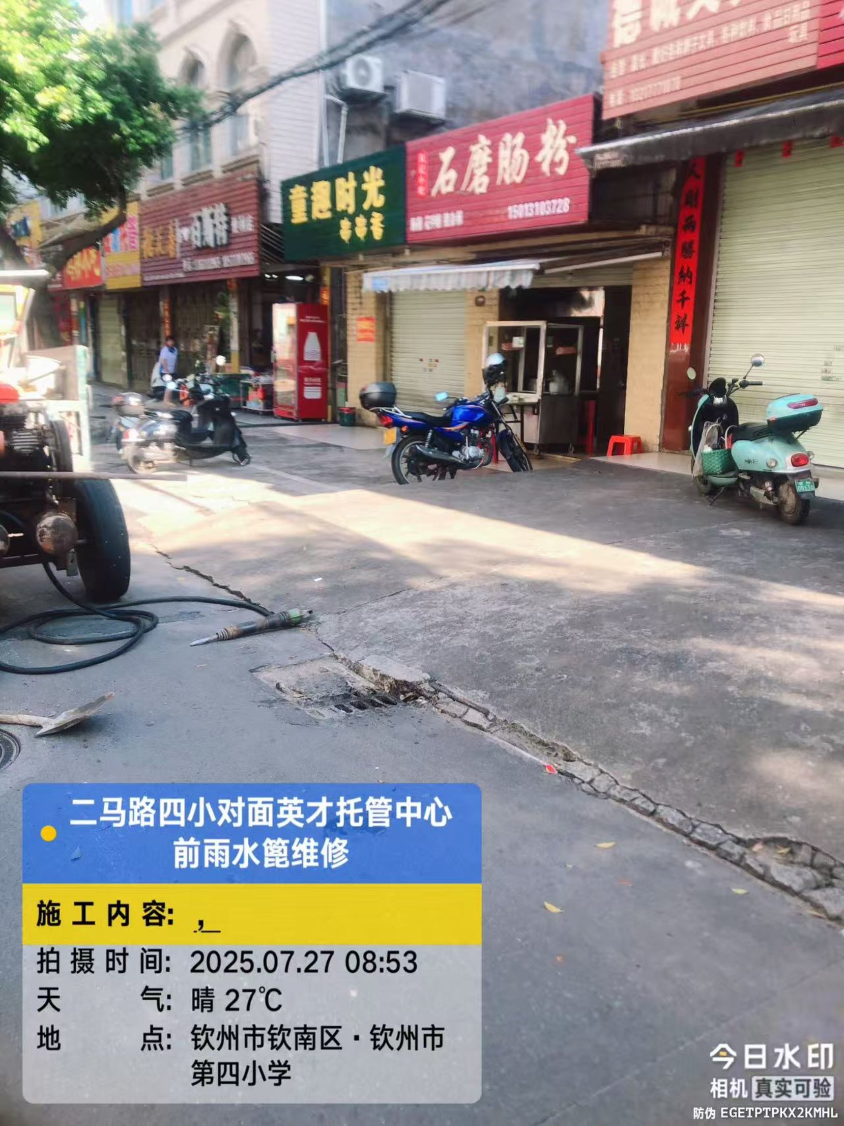 近日,市市政工程和照明处市政巡查人员在二马路、东南街等道路进行日常巡查时发现井盖有损坏的情况,立即组织施工人员对破损井盖进行了紧急修复处理,确保道路的安全。2025年2月份以来,共计完成修复更换井盖11套,安排专人对城市管网进行摸排18次,疏通清淤市政排水管道987米,清理雨水篦雨水井 22座,排查市政排水管道20公里,排查市政检查井 80个,处理雨污水窜流 6处,真空吸淤84方,气囊封堵32个,深水气囊封堵3个。