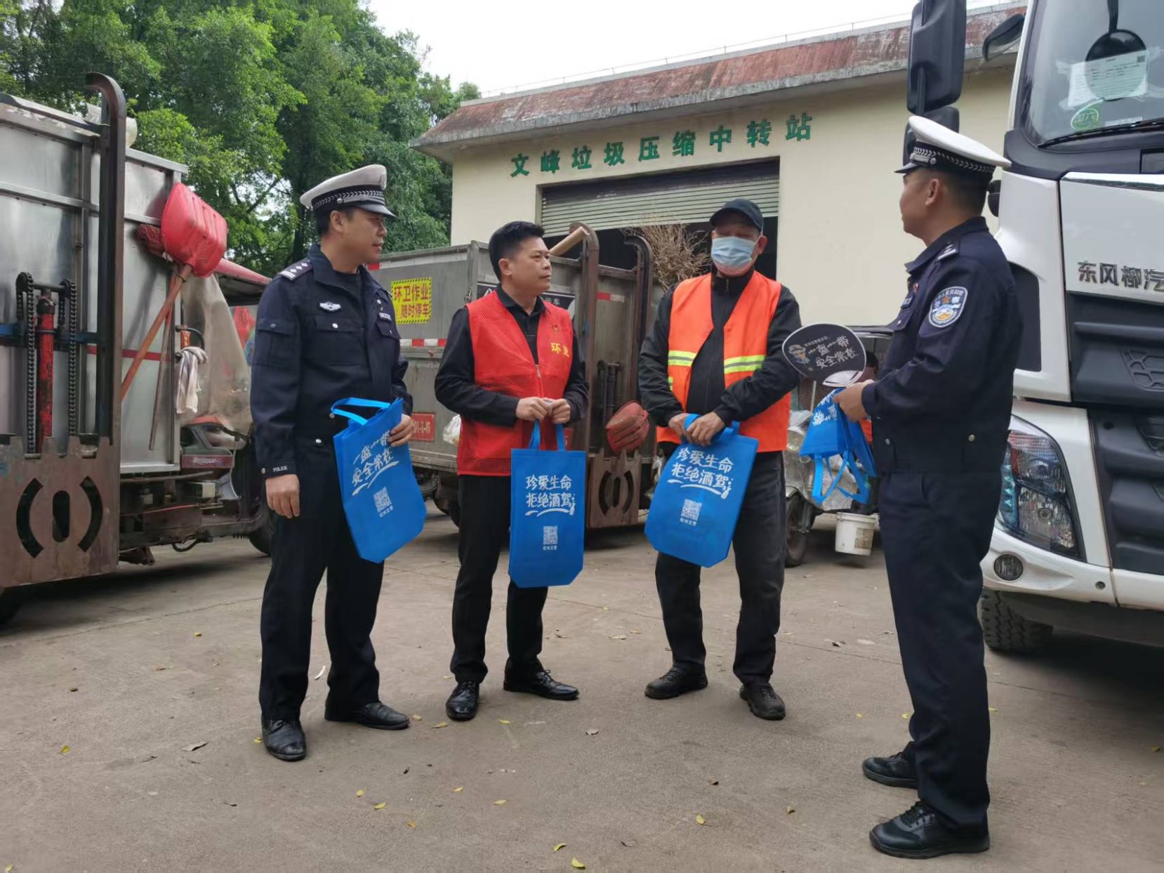 联合公安交警和爱心企业开展“庆祝广西第29个环卫工人节‘送清凉’及交通安全宣传活动”。活动分别在主城区石南、德营、二桥、环宇、水东、梅园、文峰、三桥、建安及石门坎垃圾处理场设置 10 个城市环卫驿站,各个站点工作人员将满载关怀的清凉物资逐一送到一线环卫工人手中,每份物资都承载着对环卫工人们辛勤付出的肯定与问候。同时,考虑到环卫工人户外作业的交通安全需求,现场还同步开展交通安全宣传,通过发放宣传手册、现场讲解等形式,普及道路通行规则、避险技巧等知识,切实筑牢环卫工人的安全防护网。