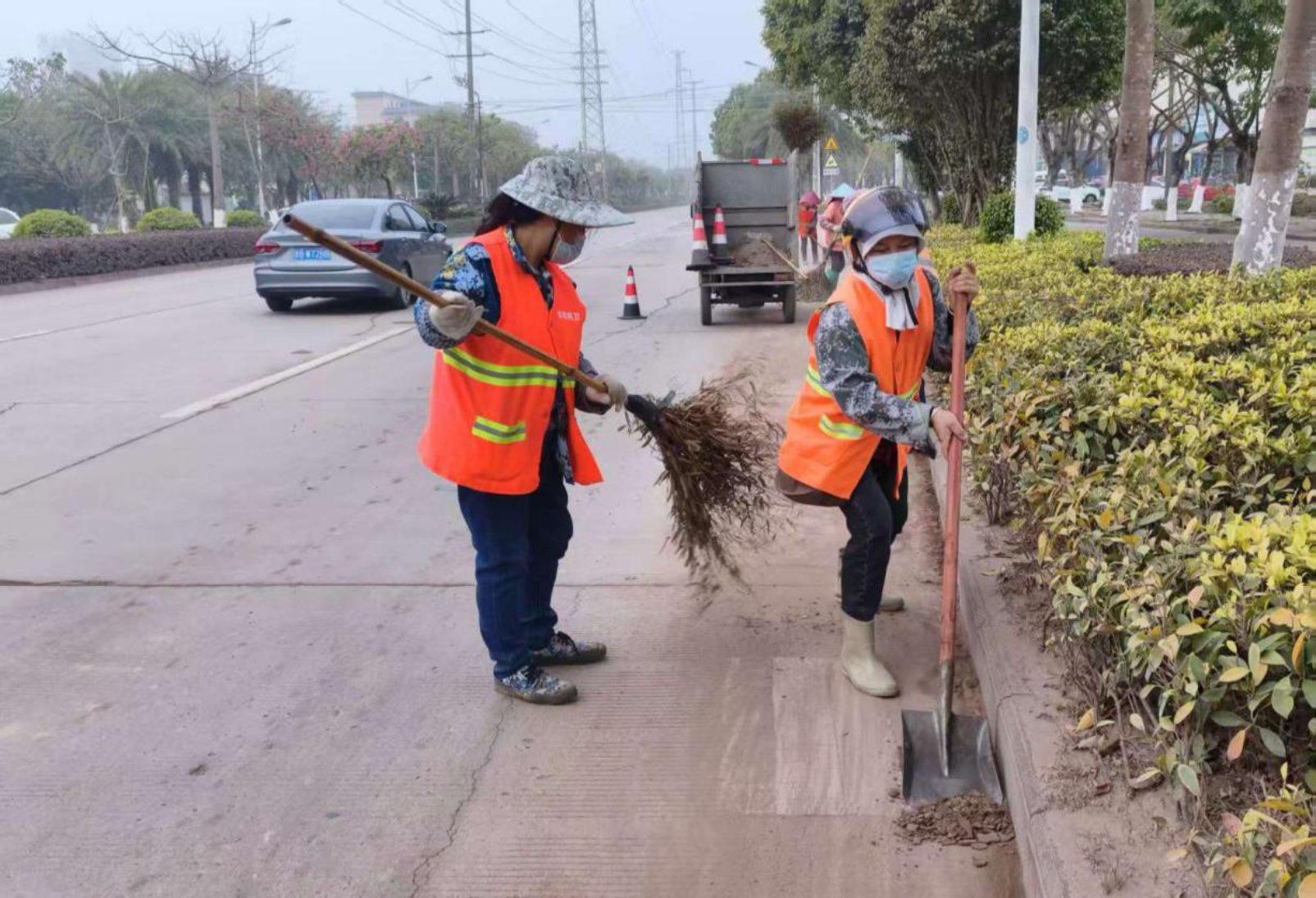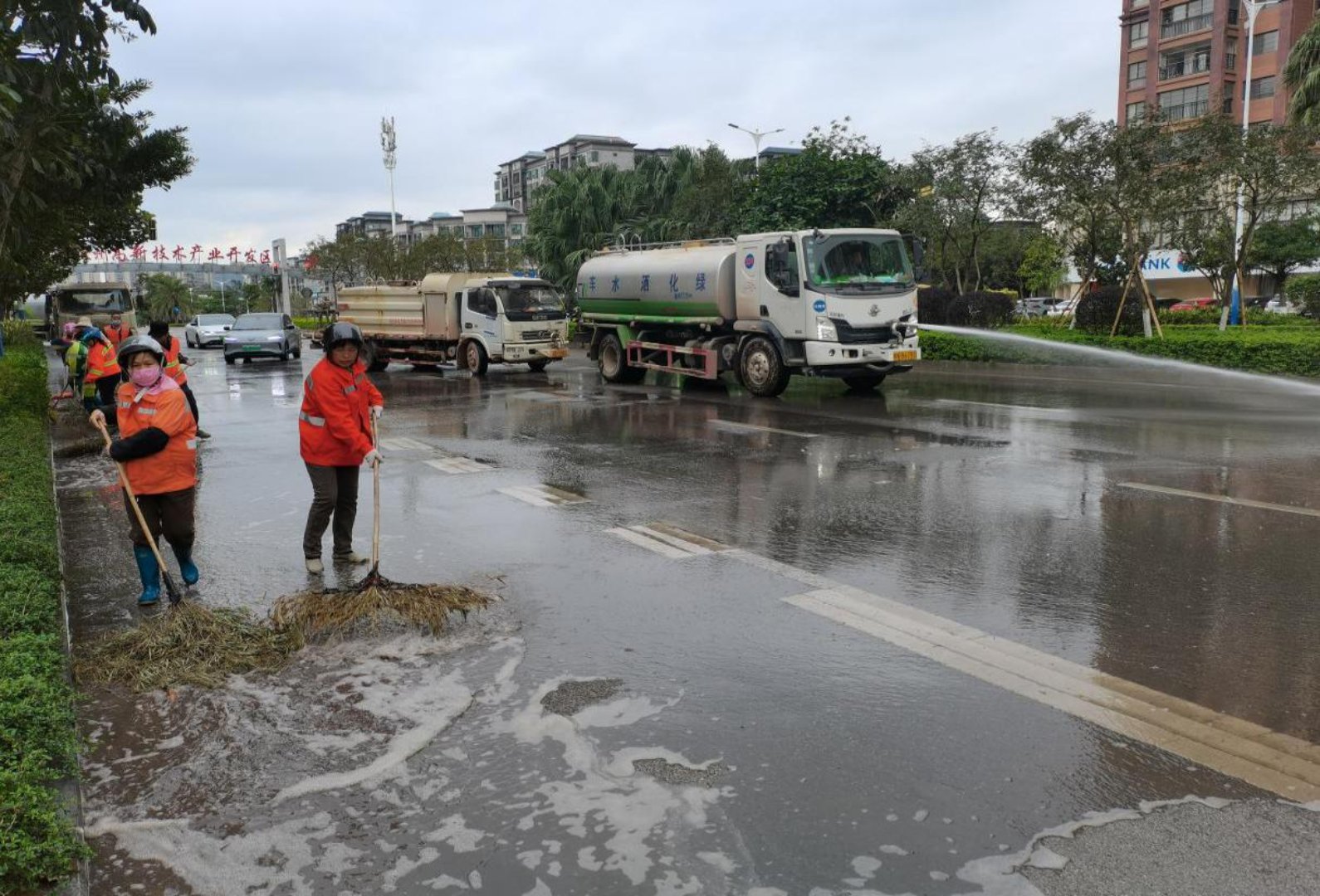 “水车冲洗+人工清扫”现场作业图片