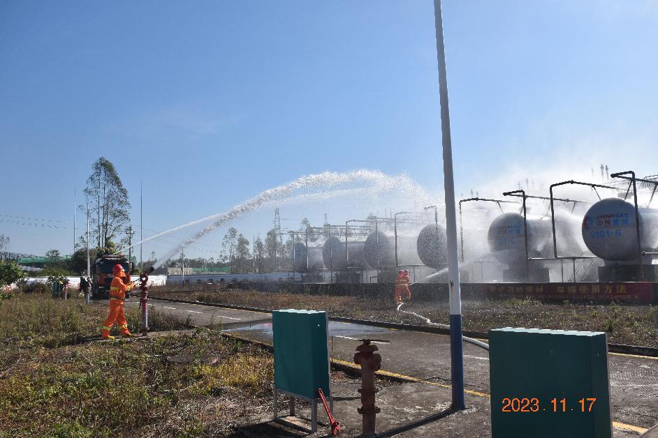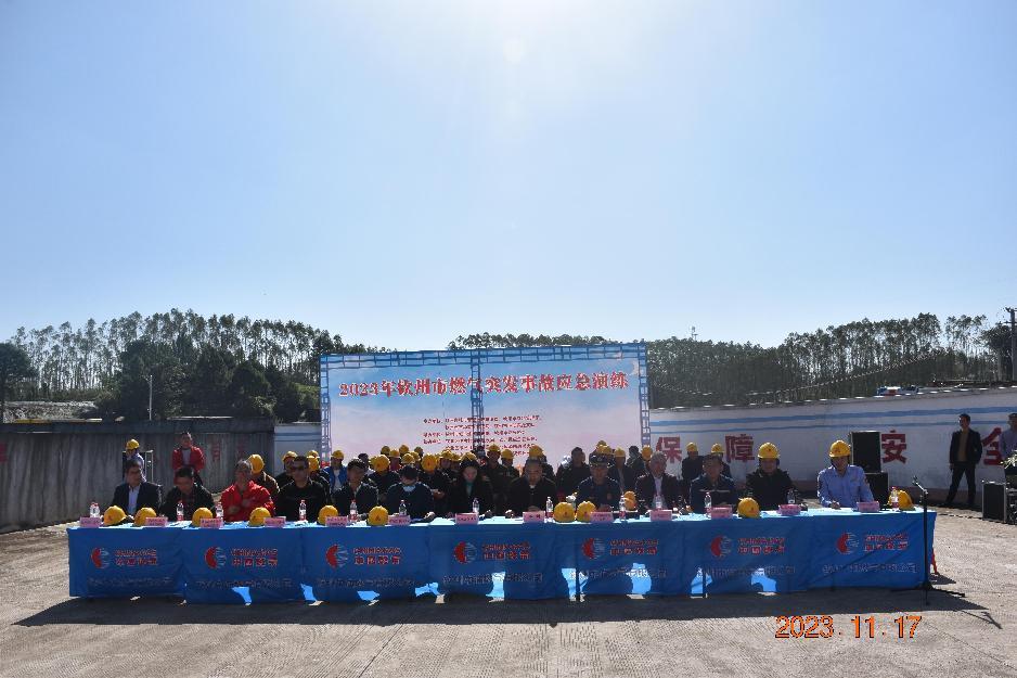 2023年11月17日上午,市城管执法局组织市应急管理局、市场监管局、消防救援支队及钦北区有关部门、燃气企业在钦州中油燃气有限公司储配站开展燃气突发事故应急演练。