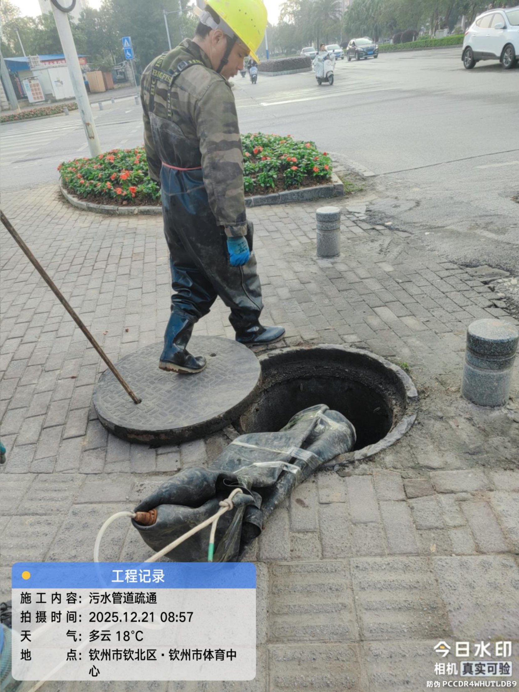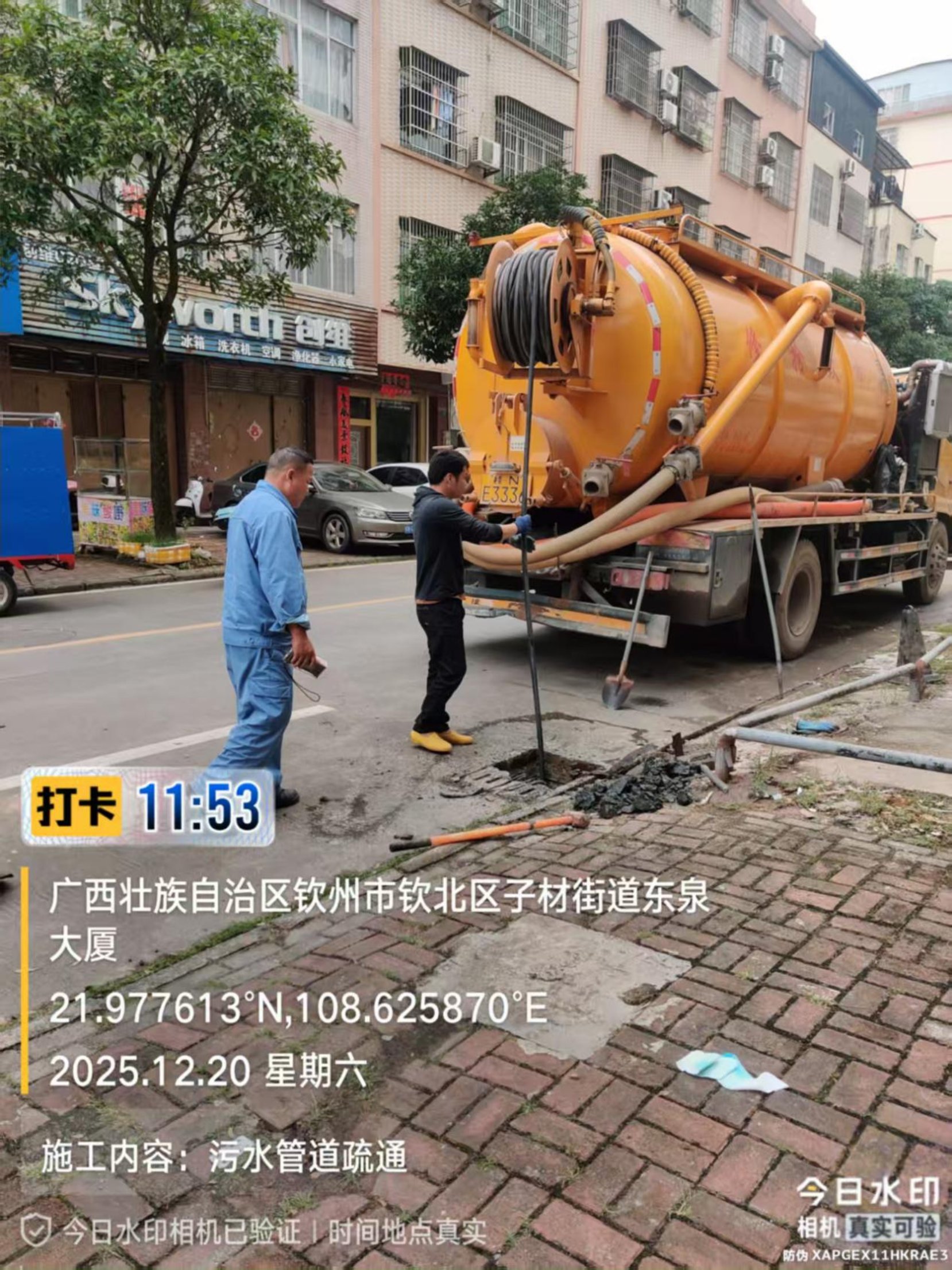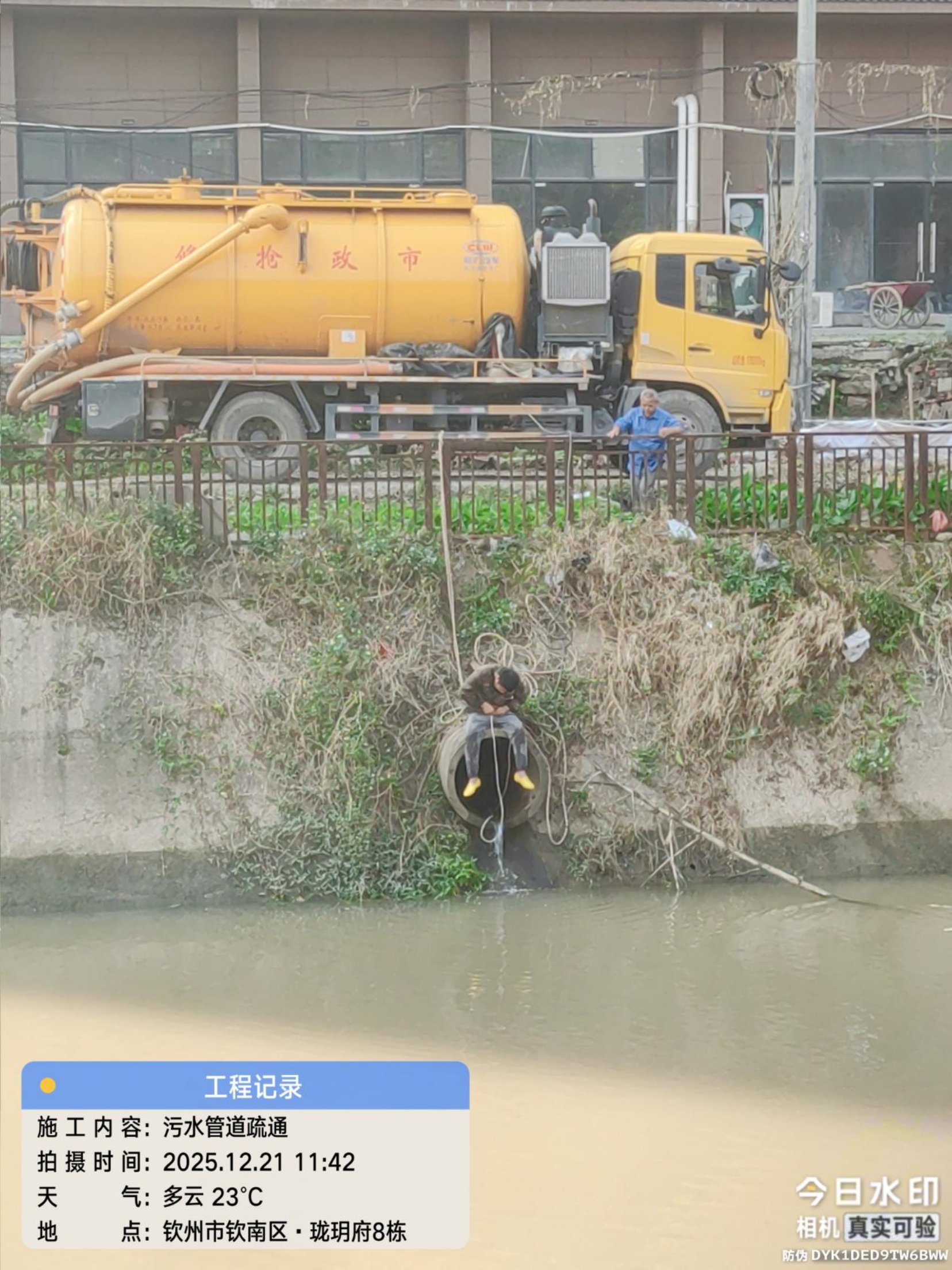 图为市市政工程和照明处开展的污水管道治理工作