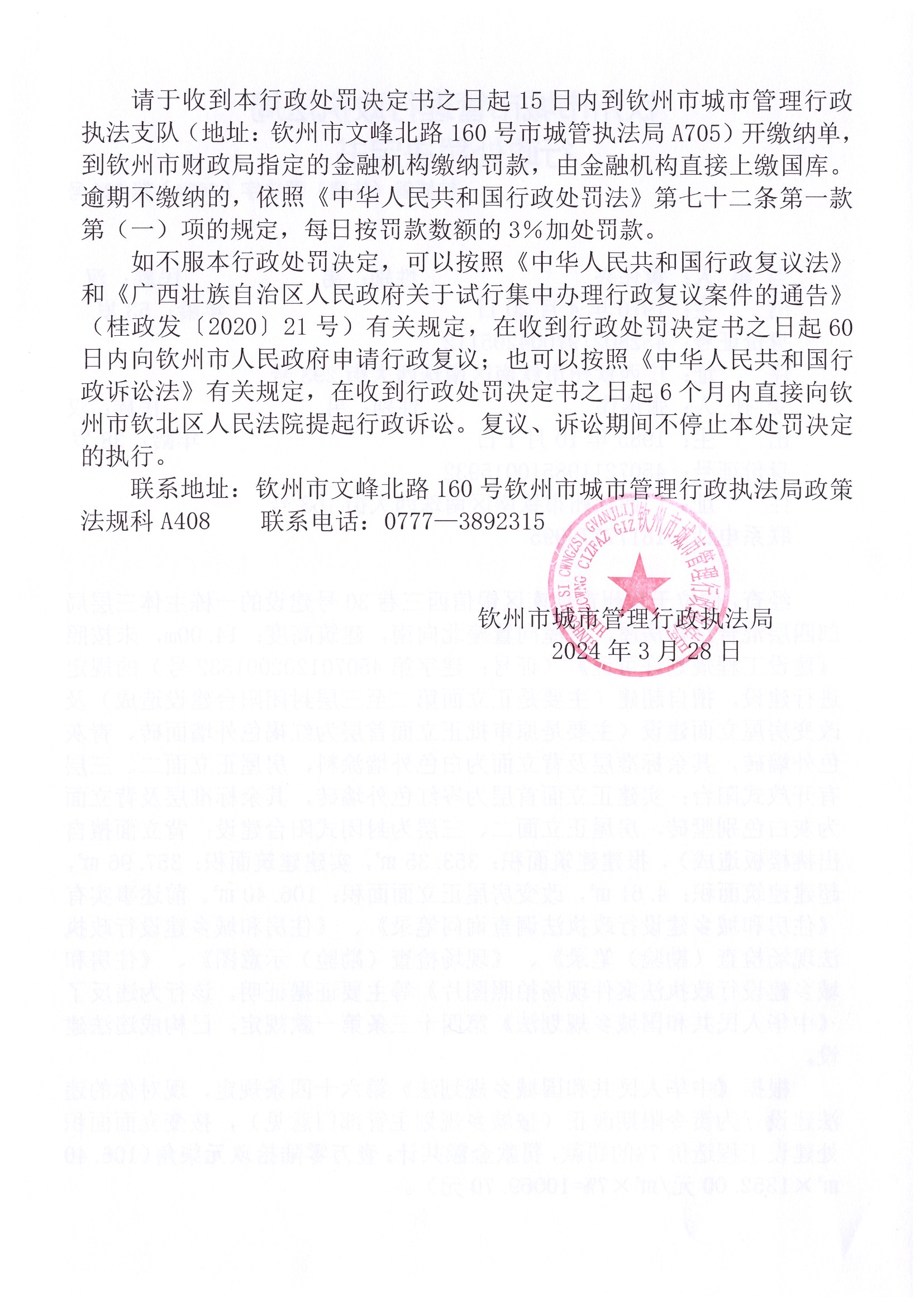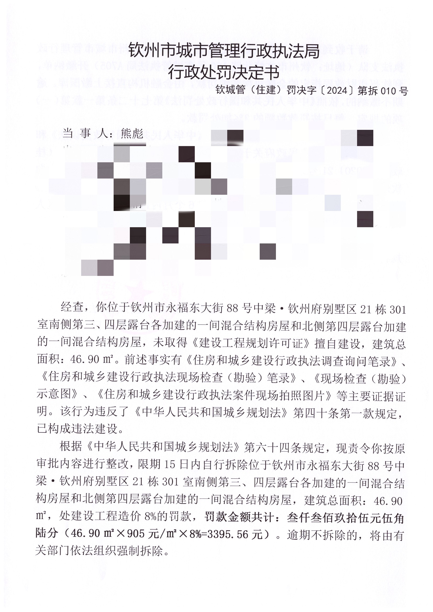 钦城管(住建)罚决字〔2024〕第拆010号 |