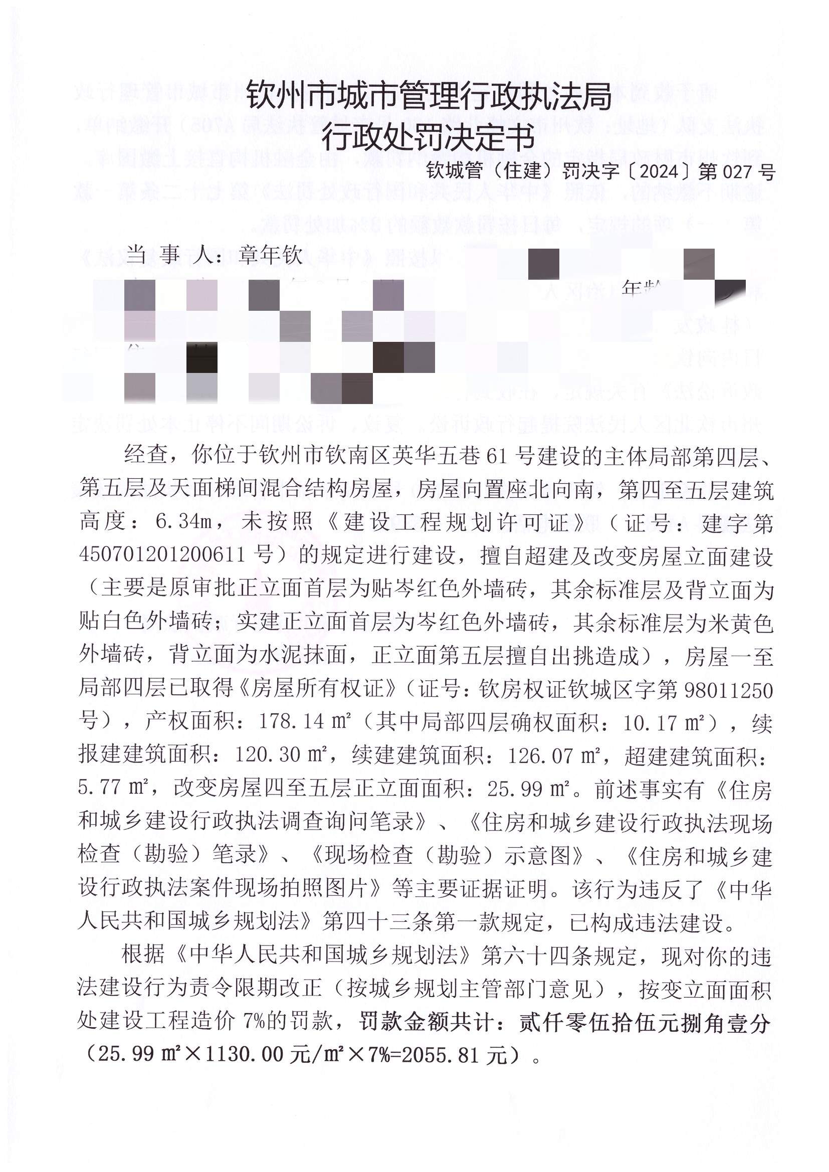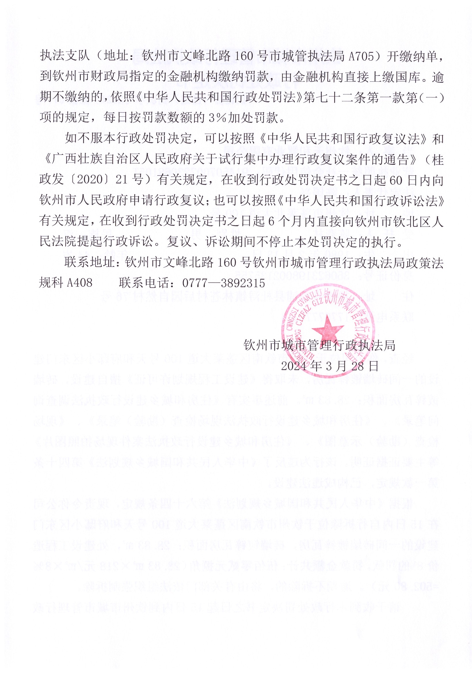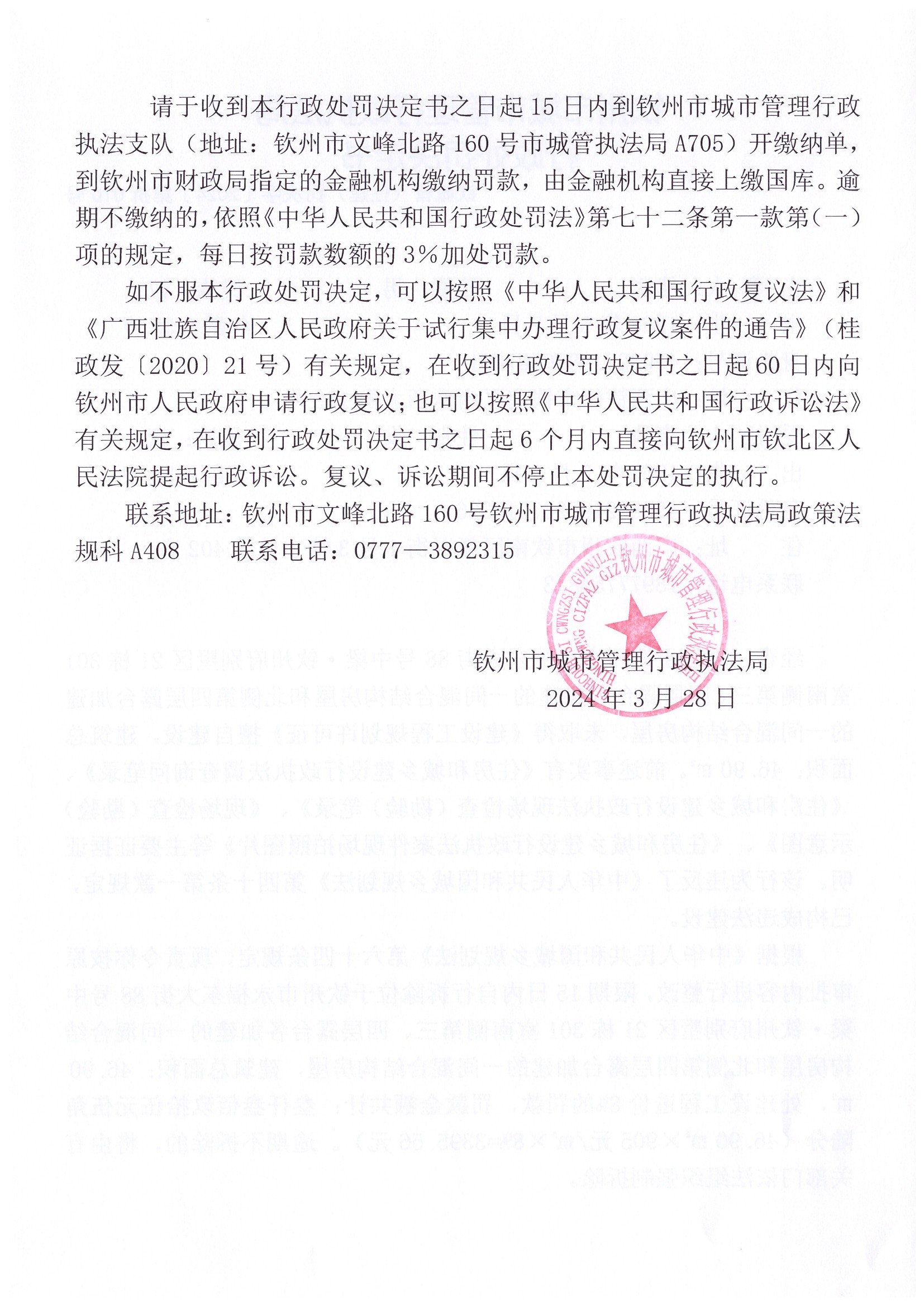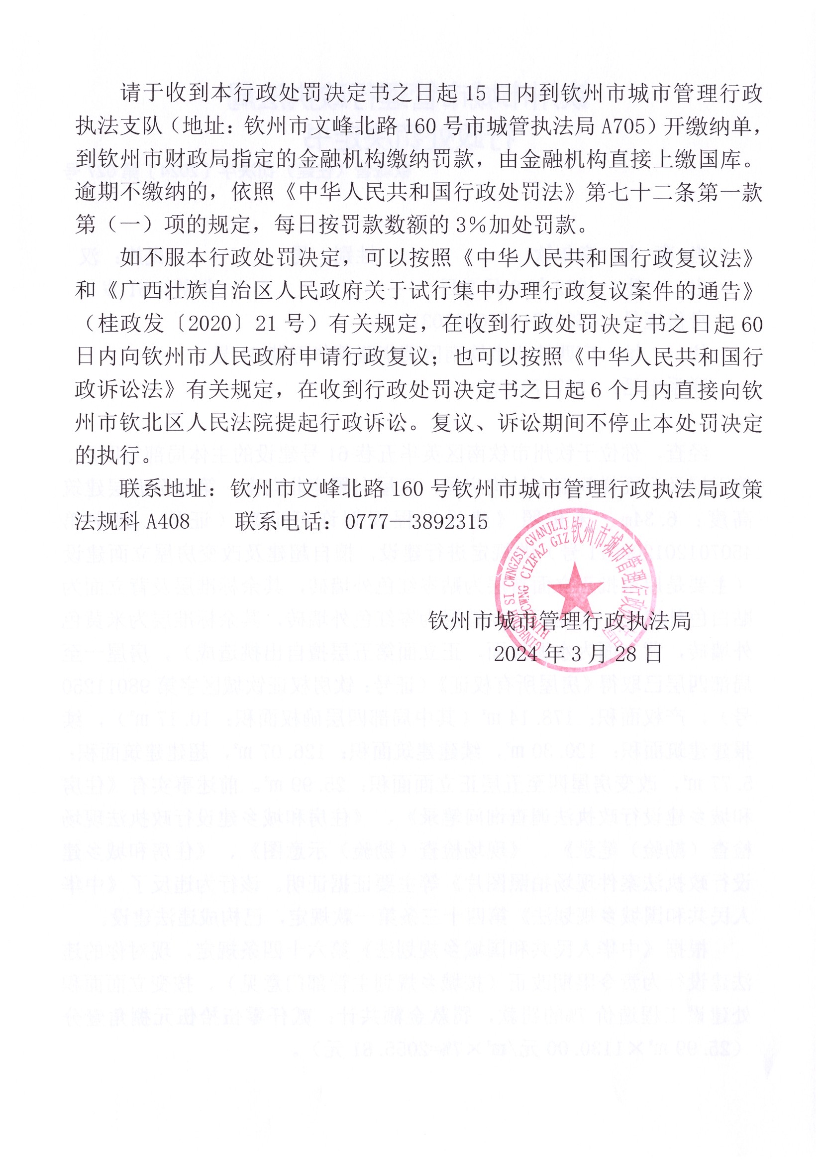 钦城管(住建)罚决字〔2024〕第027号 |
