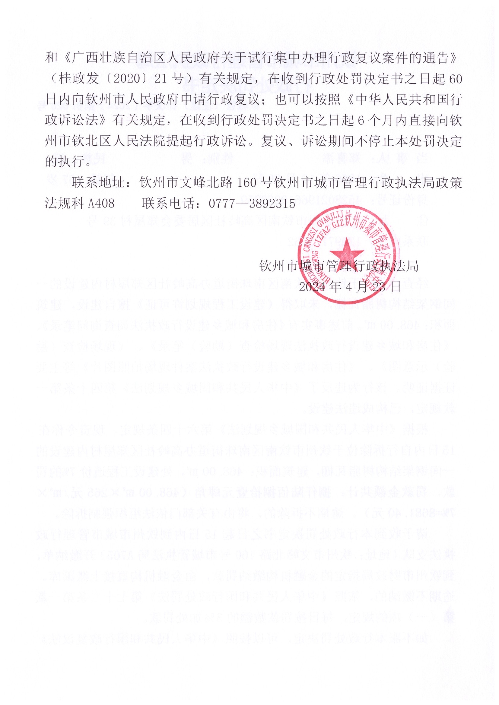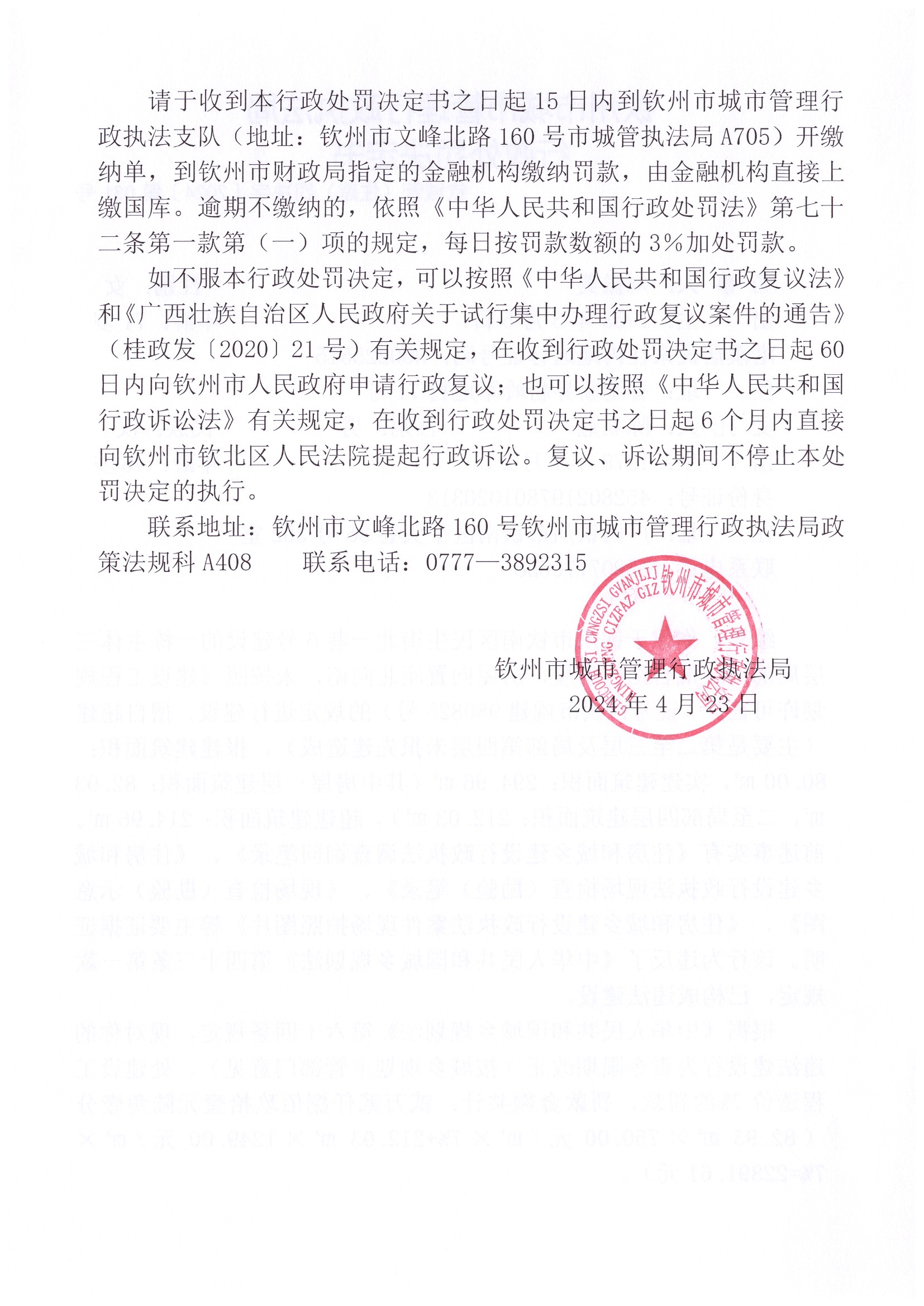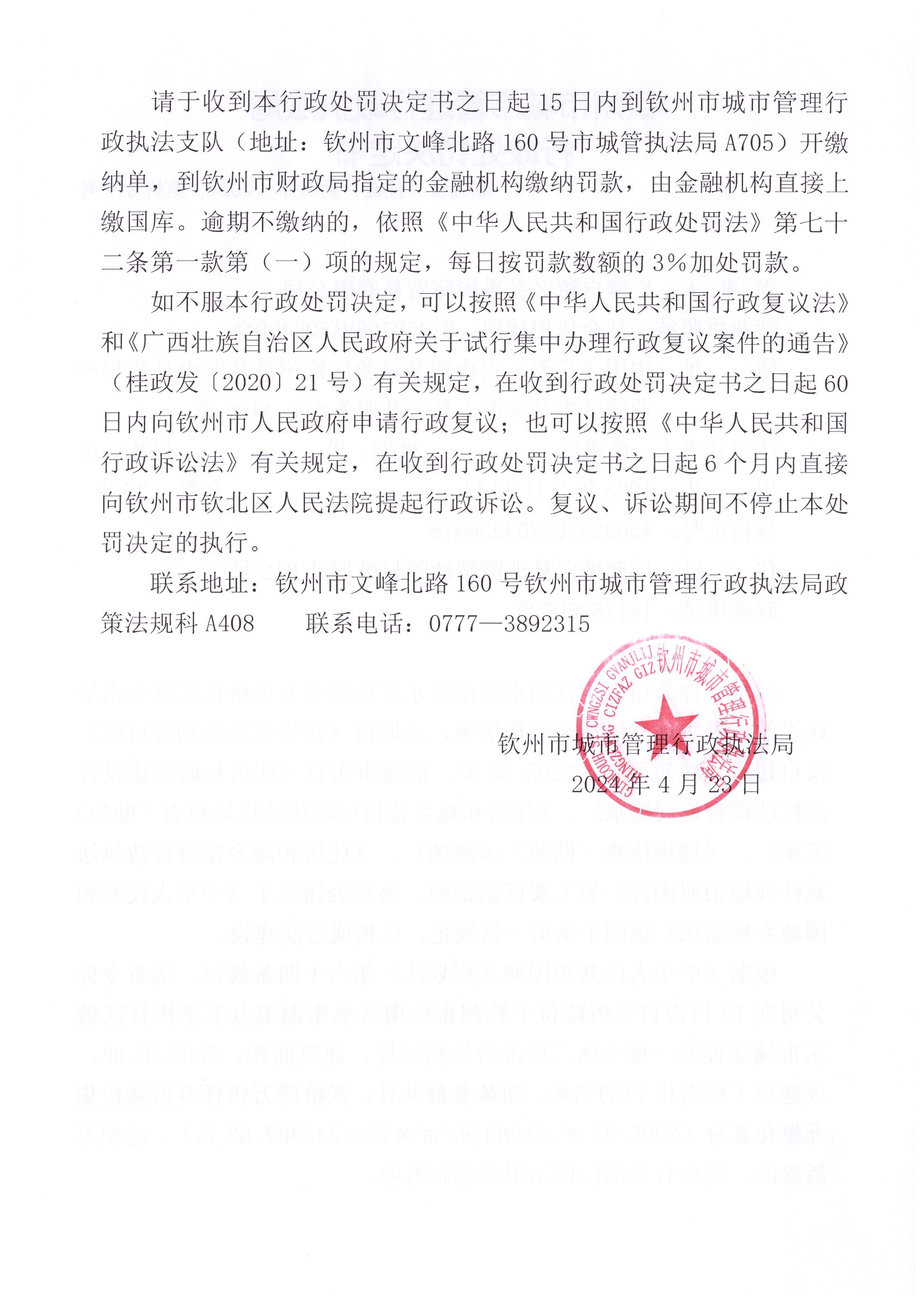 钦城管(住建)罚决字〔2024〕第拆020号 |