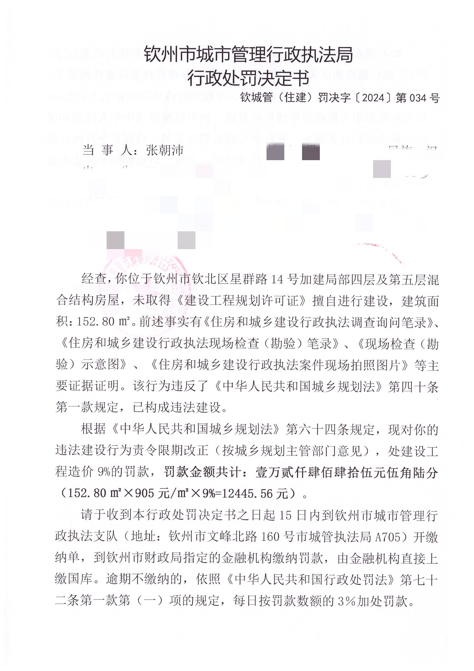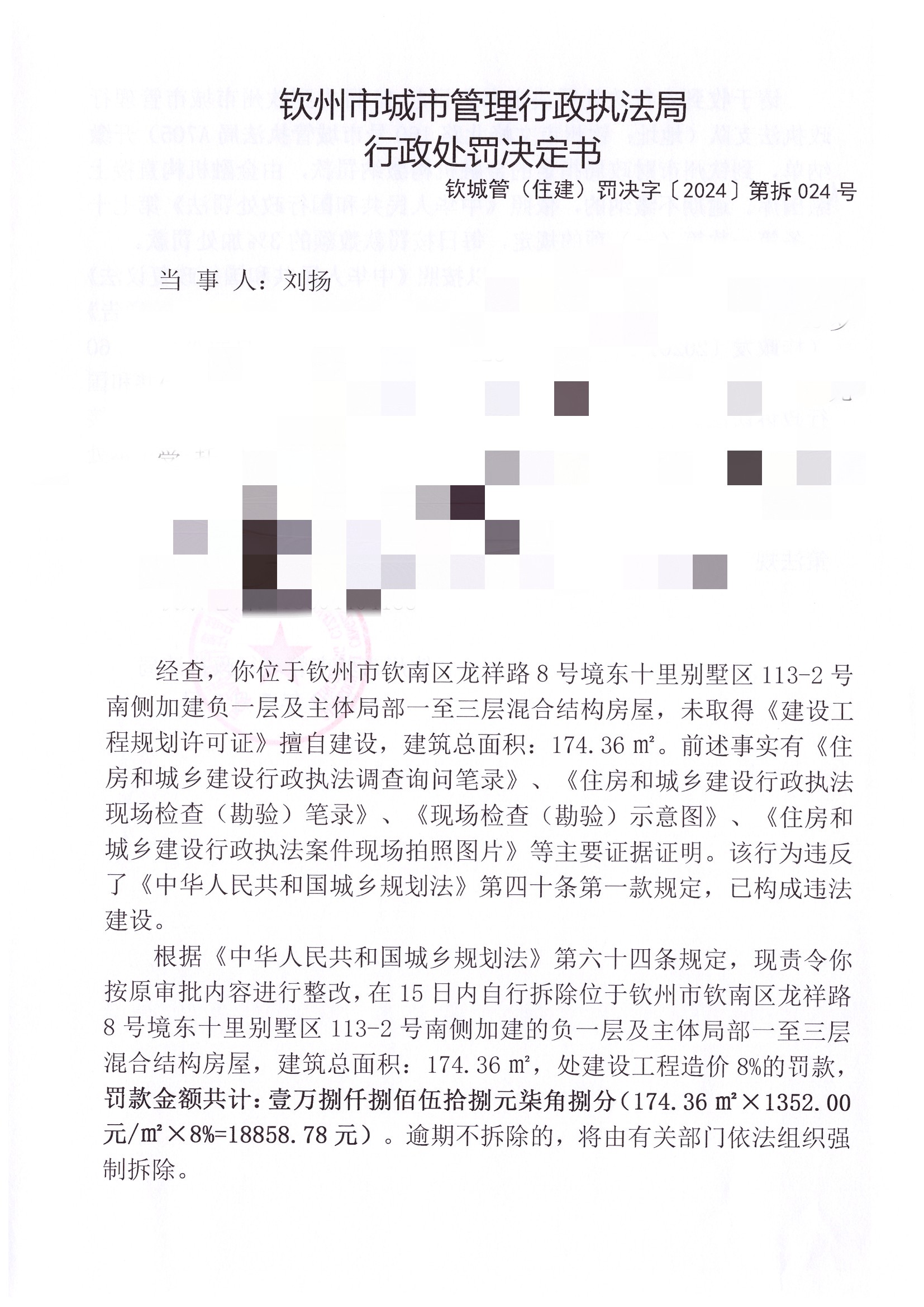 钦城管(住建)罚决字﹝2024﹞第拆024号 |