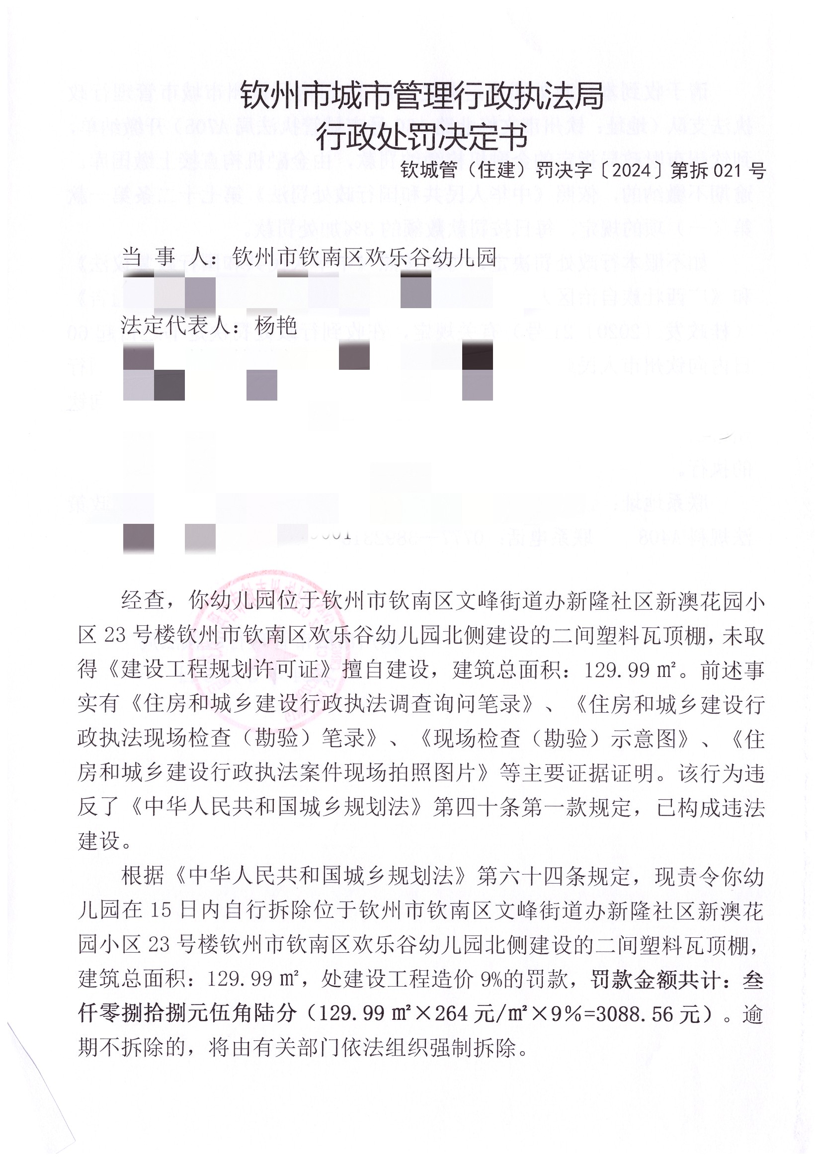 钦城管(住建)罚决字﹝2024﹞第拆021号 |