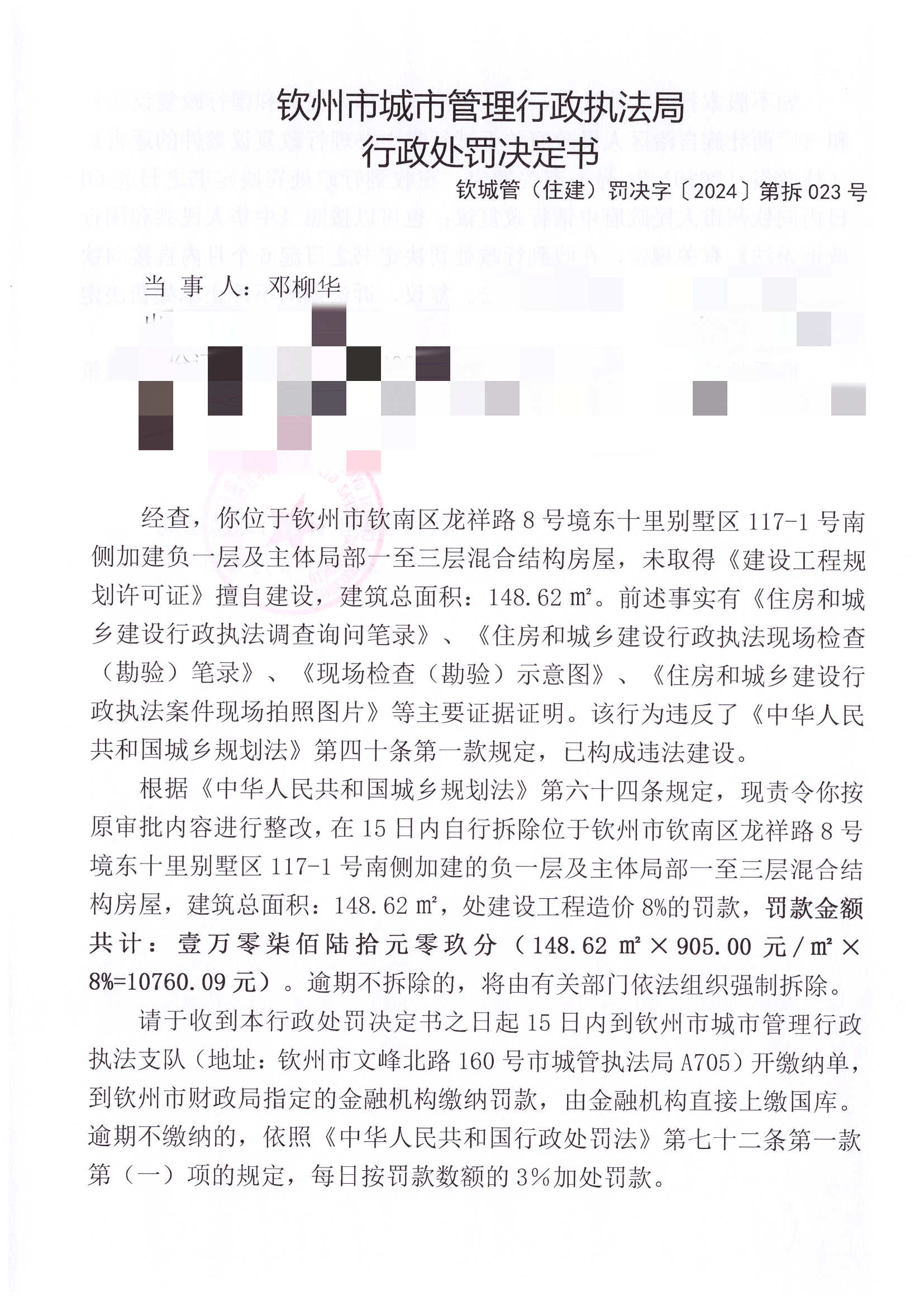 钦城管(住建)罚决字﹝2024﹞第拆023号 |