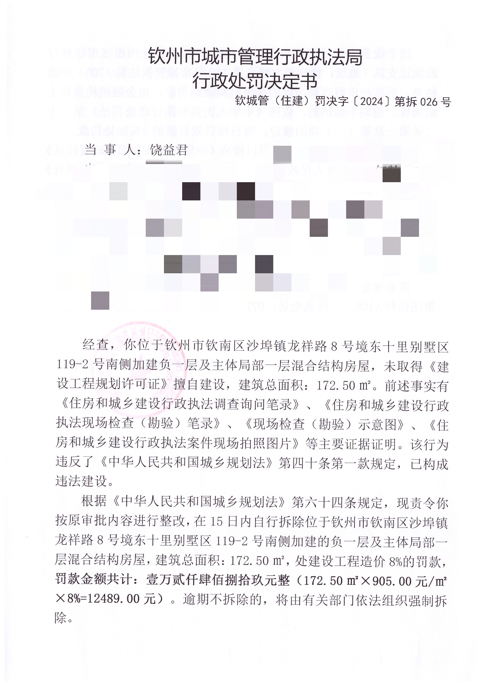 钦城管(住建)罚决字﹝2024﹞第拆026号 |