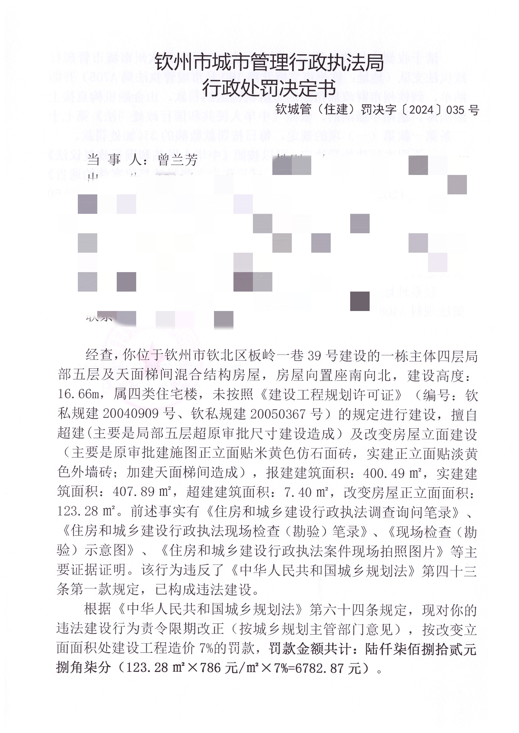 钦城管(住建)罚决字〔2024〕第035号 |