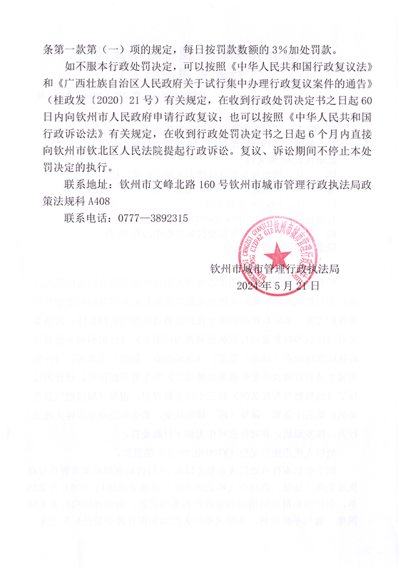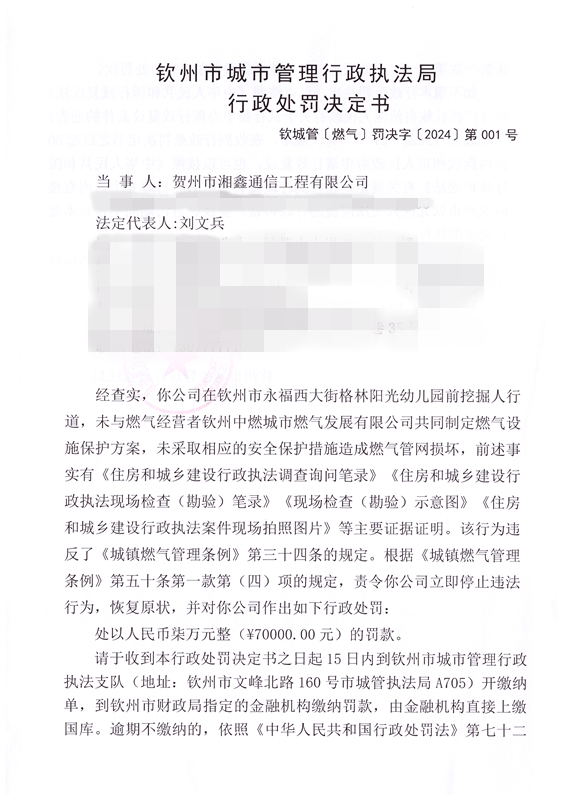 钦城管〔燃气〕罚决字〔2024〕第001号 |