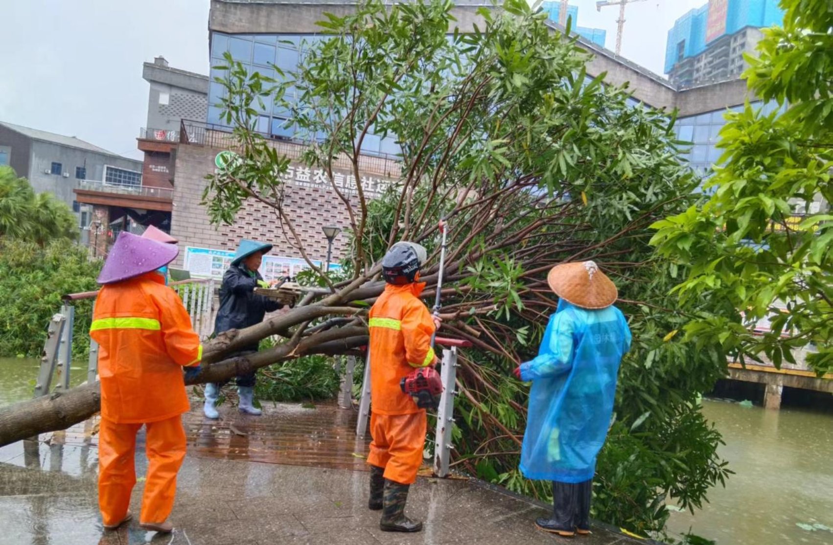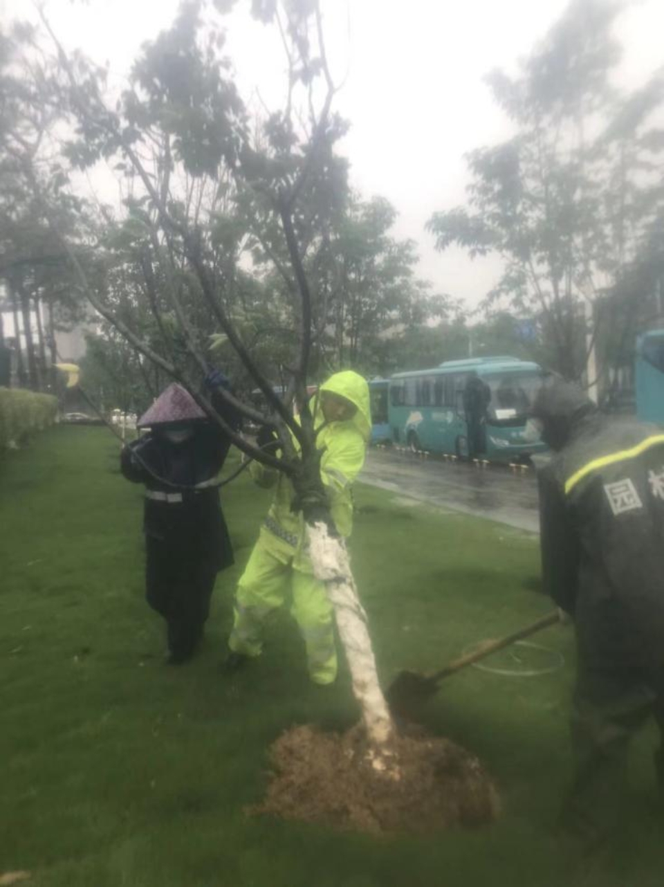 市园林处迅速启动应急预案,组织工作人员开展扶树清枝、绿地排涝、道路清障等工作,特别是对重点地区树木进行扶正和支撑加固,防止树木二次倒伏。