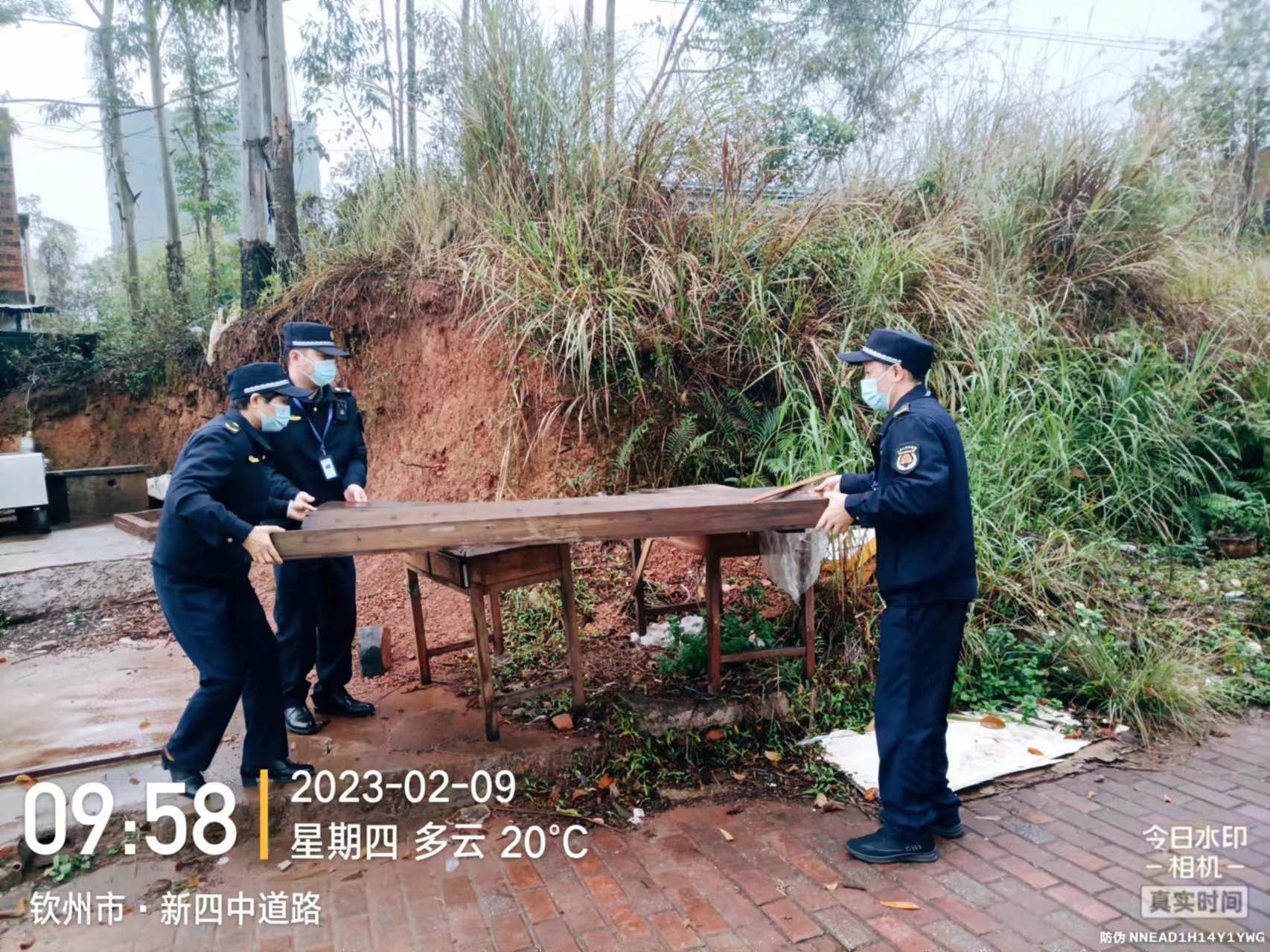 执法人员整治乱堆放杂物的工作照片