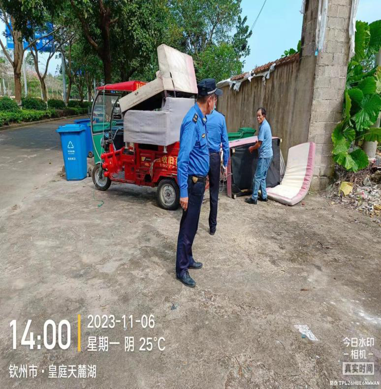 2023年11月6日,市城管执法支队执法人员在巡查时,发现钦北区永福东大街人行道上有市民正在随意丢弃沙发、床垫等生活垃圾,执法人员立即当场制止了该行为,并对该市民进行教育,明确告知其乱倒生活垃圾的危害性和不良后果。为了确保该当事人能够深刻认识到自己的错误并改正行为,执法人员让当事人当场写下保证书,承诺今后不再随意丢弃生活垃圾。